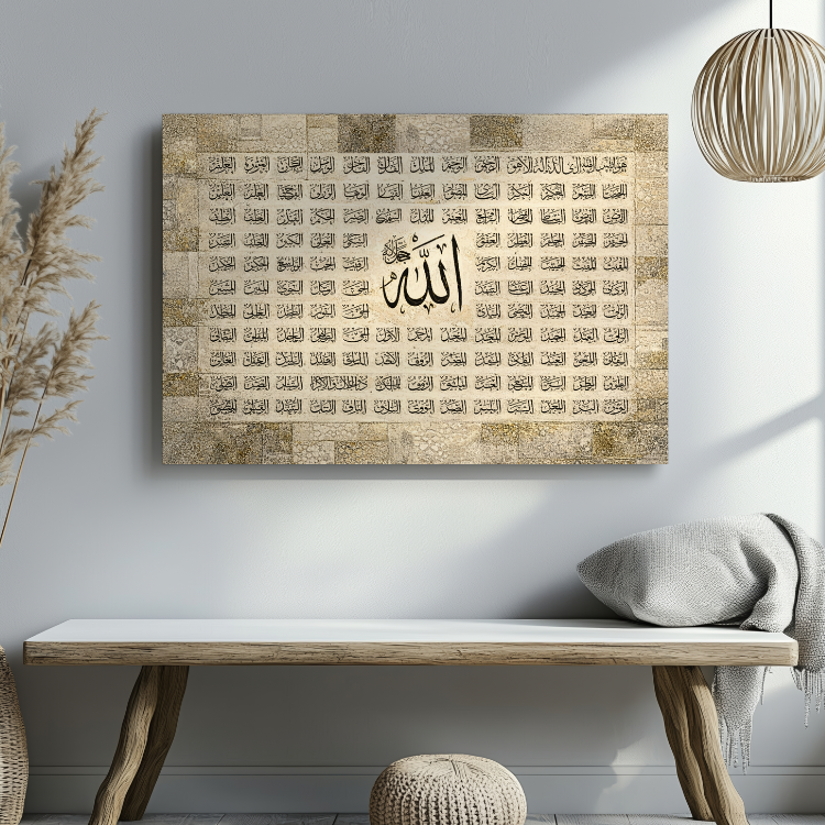 99 Names of Allah Wall Art Canvas Painting with Floater Frame